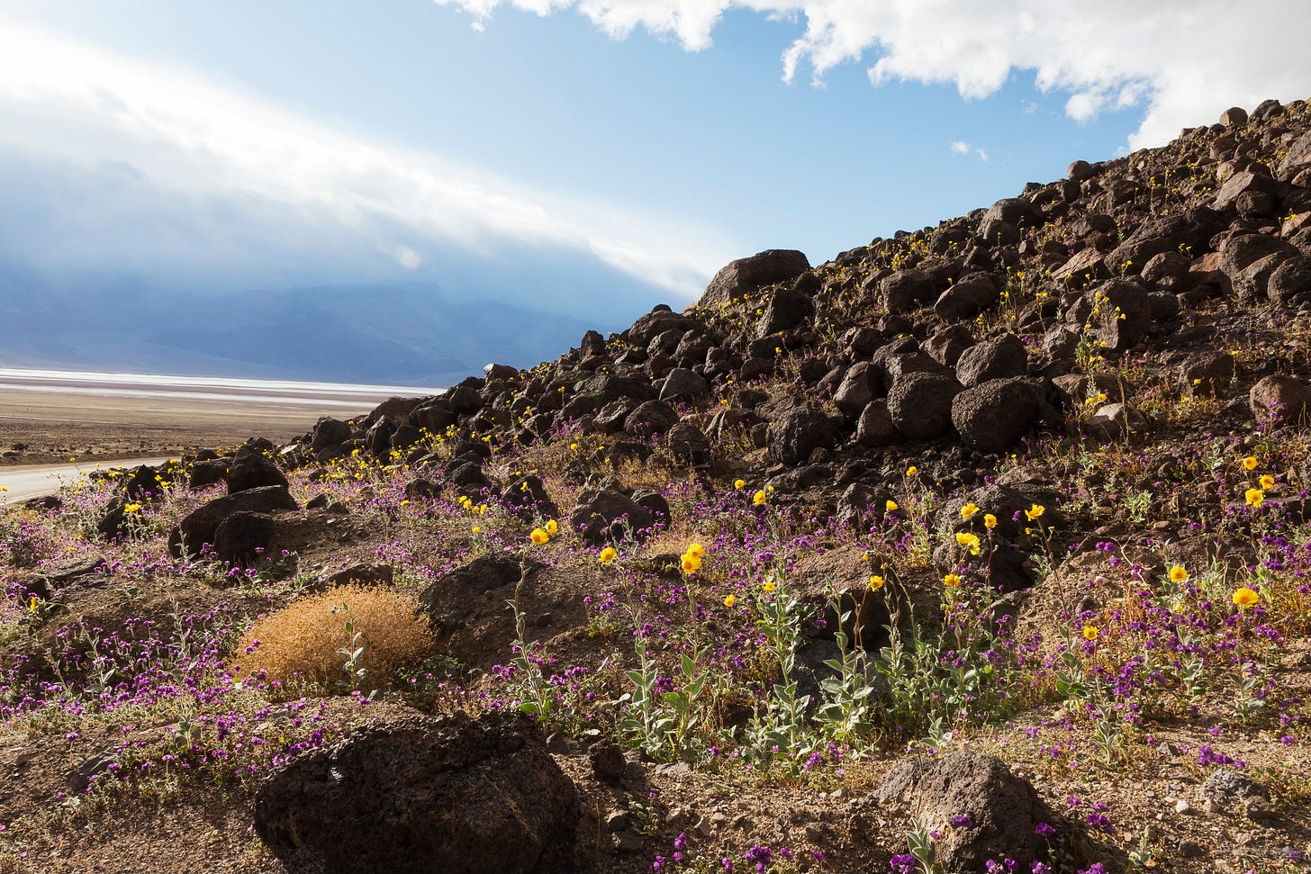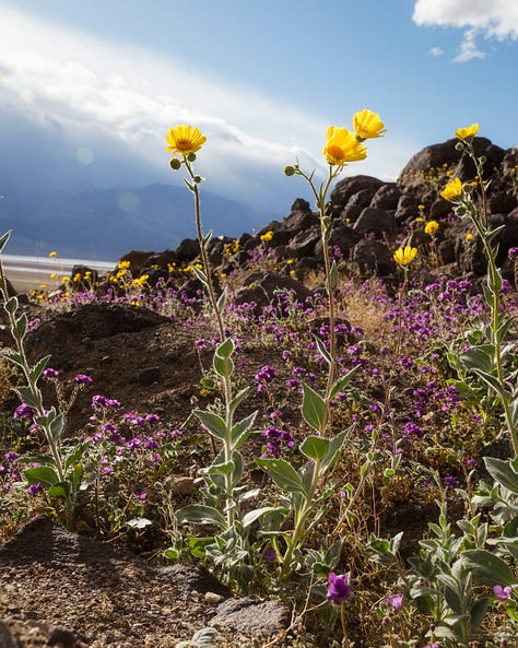 Mid-February is potentially the sweet spot if conditions line up. I caught a storm, the super bloom, 50 mph winds, and water in Lake Manly. It was extraordinary.