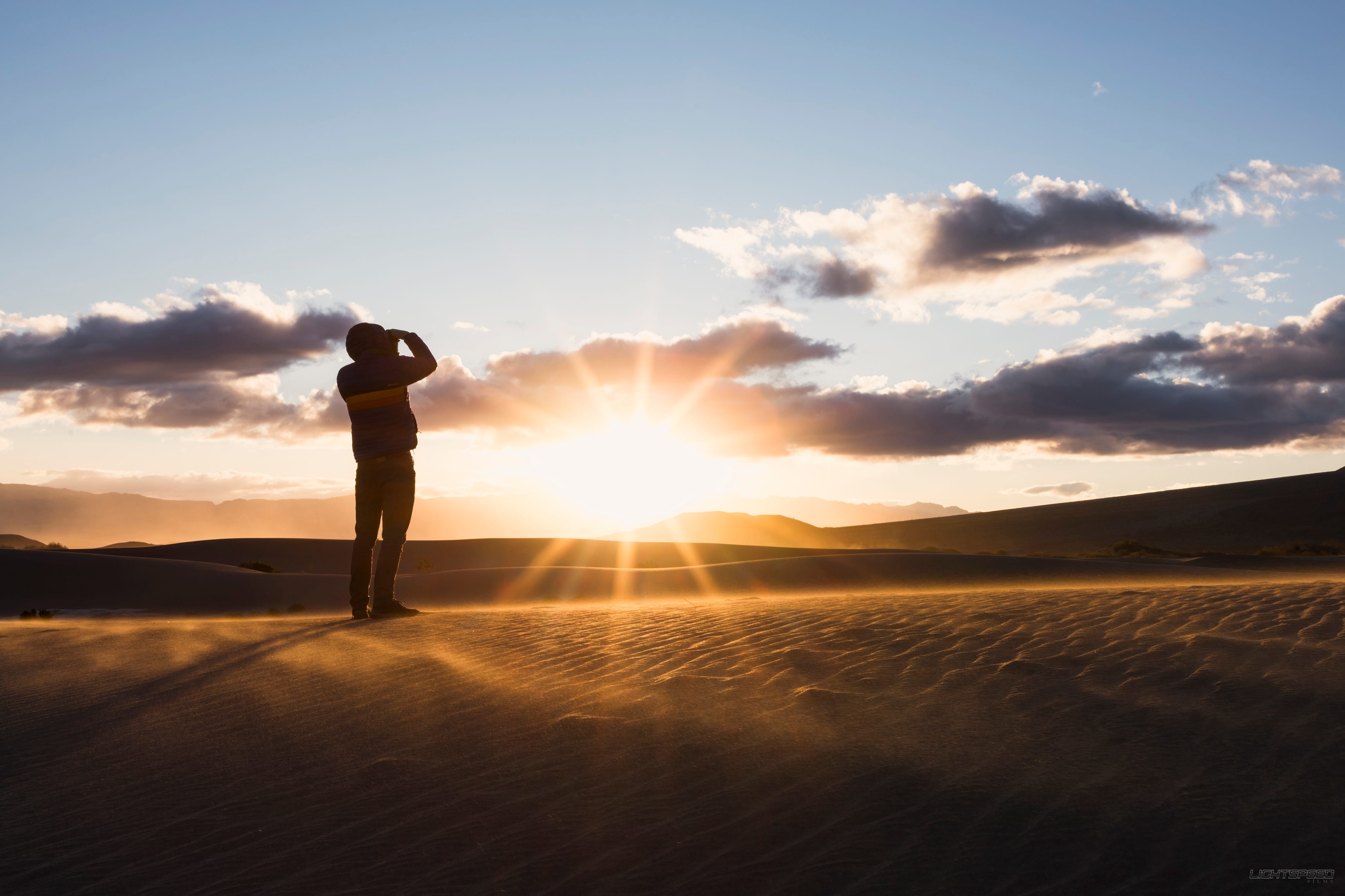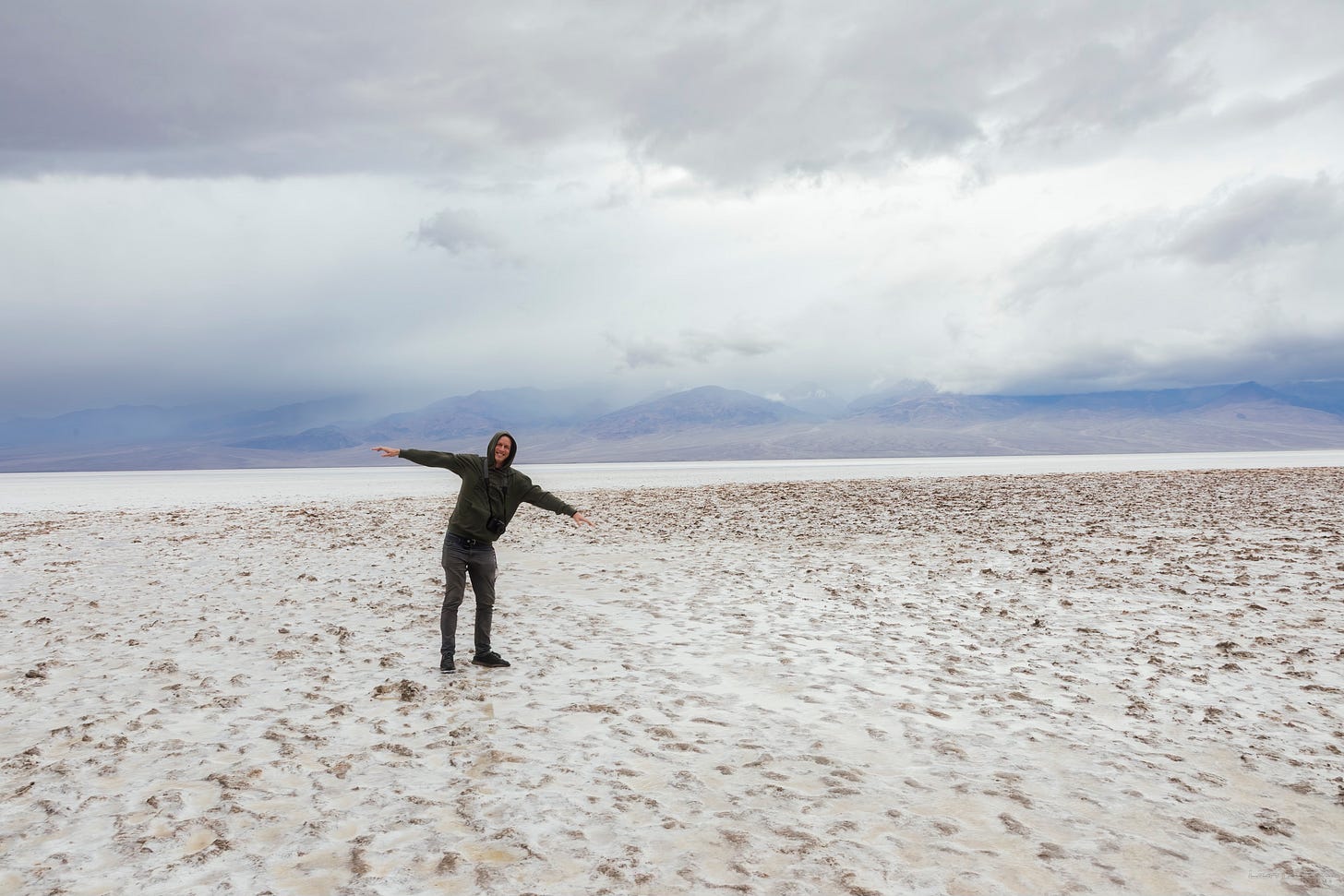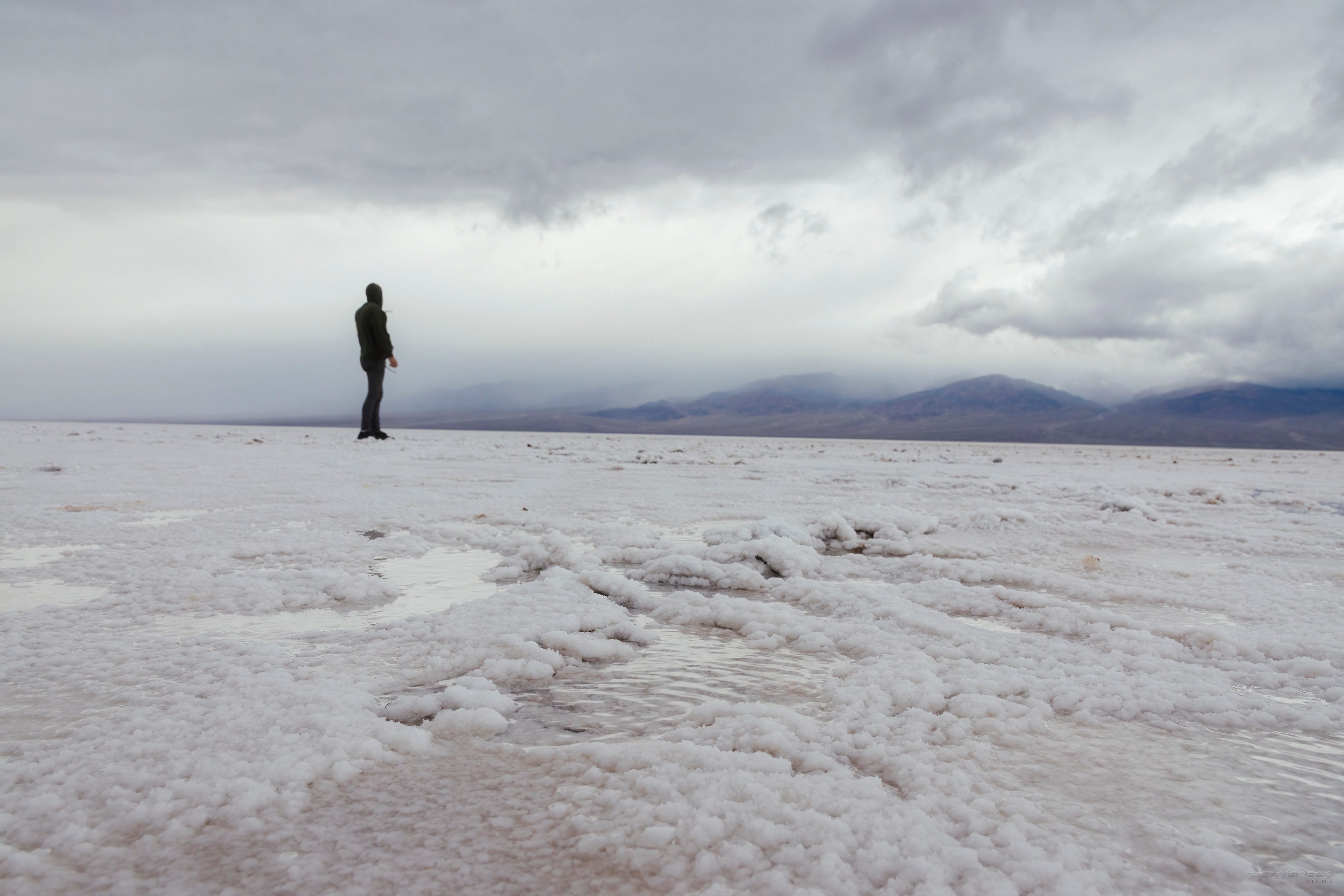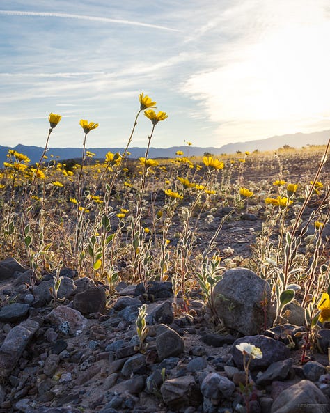 Most people think of it as barren, dry, and inhospitable. That’s all true. But I drove through during a storm and saw something else entirely. Water sitting in Lake Manly. 50 mph winds. A super bloom. Light breaking through clouds over salt flats and dunes. Sand dancing in the wind. A place that felt brutal one minute and completely alive the next.