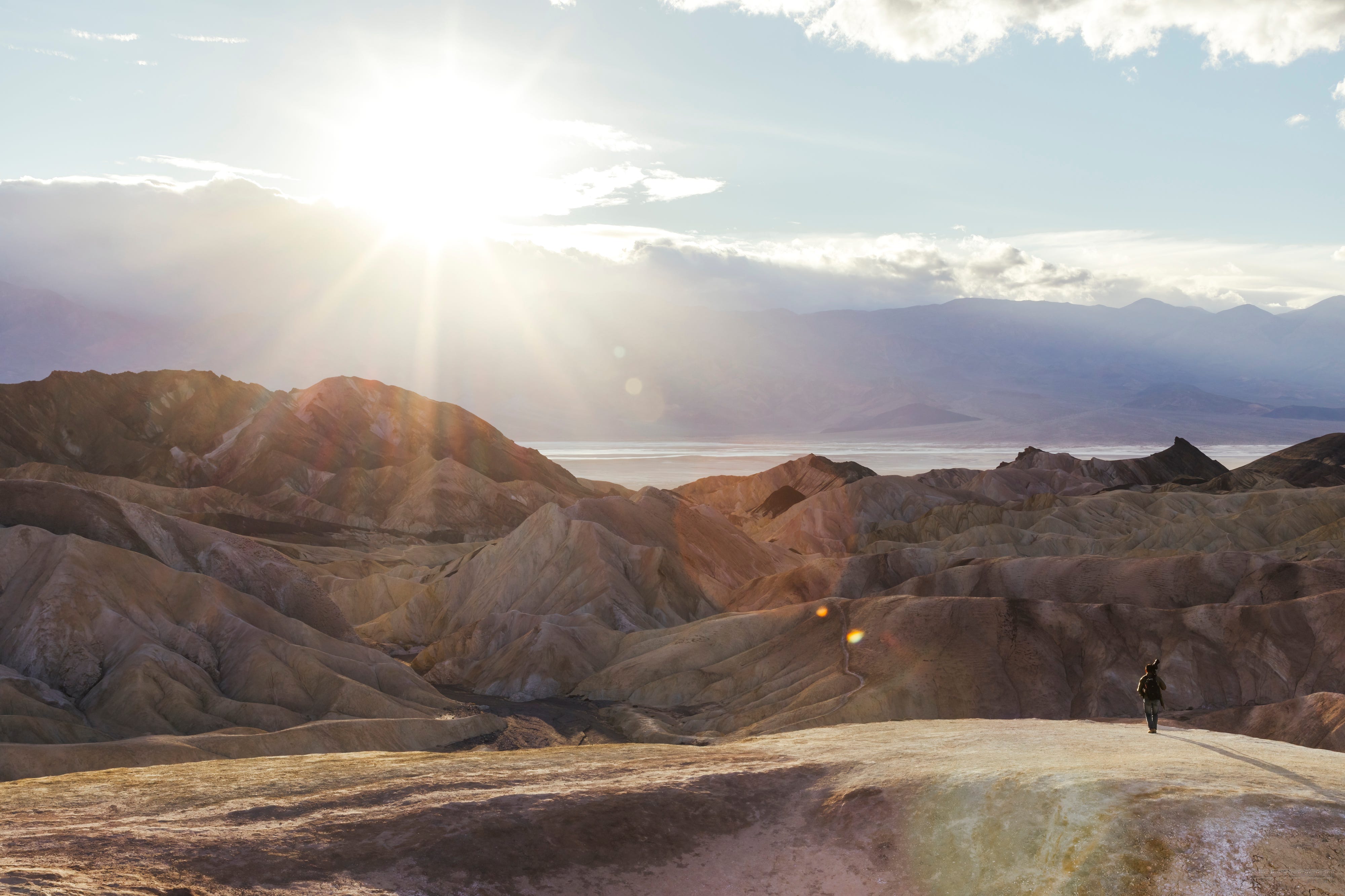 Winter is the time. December through February. Late February gives you the best shot at cooler temperatures, storm clouds, and potential rain, which changes everything out there. You are in the desert, so the light is harsh and it moves fast. About half an hour after sunrise it is already getting really harsh. Your real windows are that first half hour at sunrise and the afterglow after sunset. Unless there are clouds, and then the light can extend and the whole scene turns dramatic and alive. Clouds in Death Valley are everything.